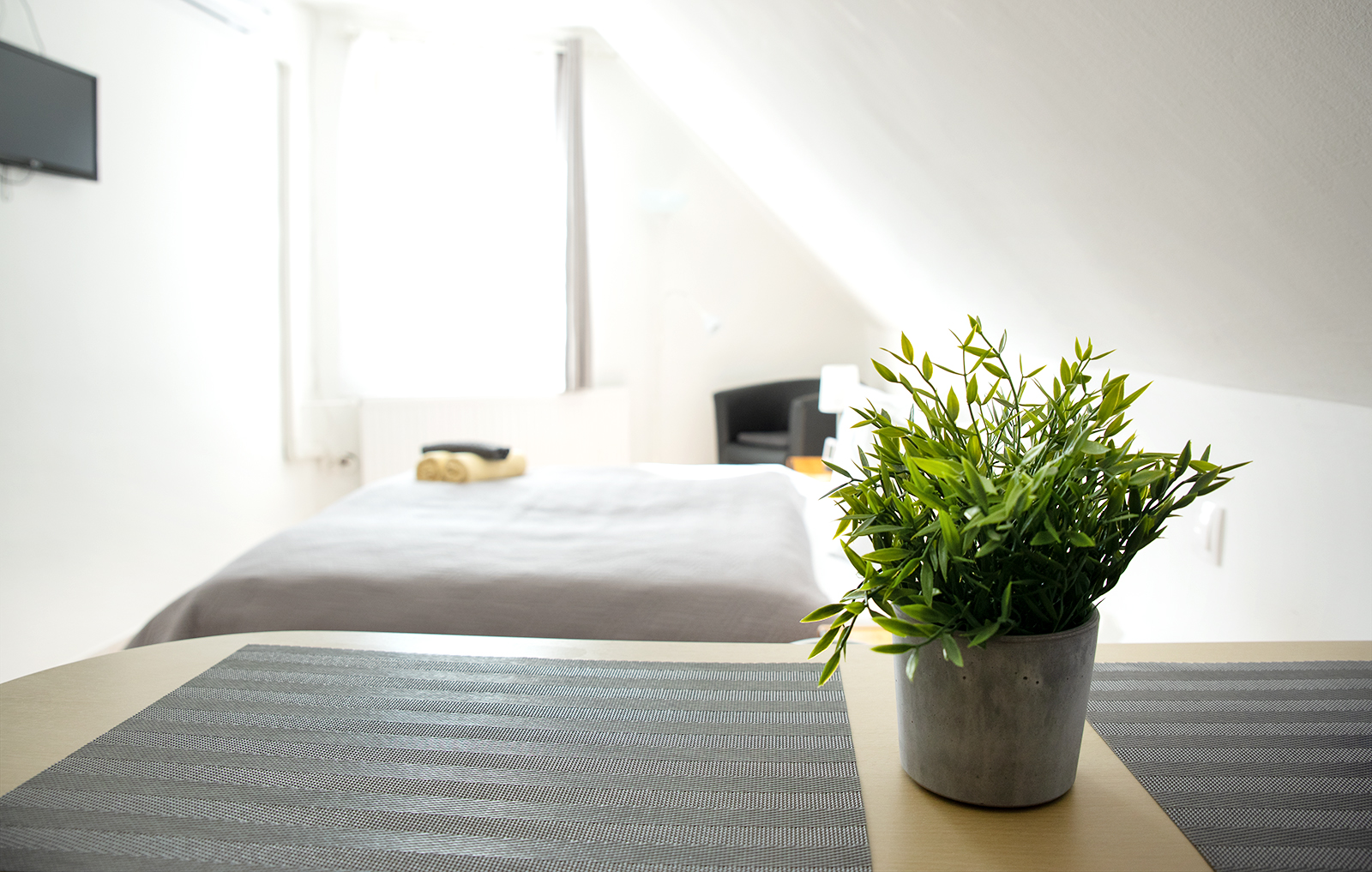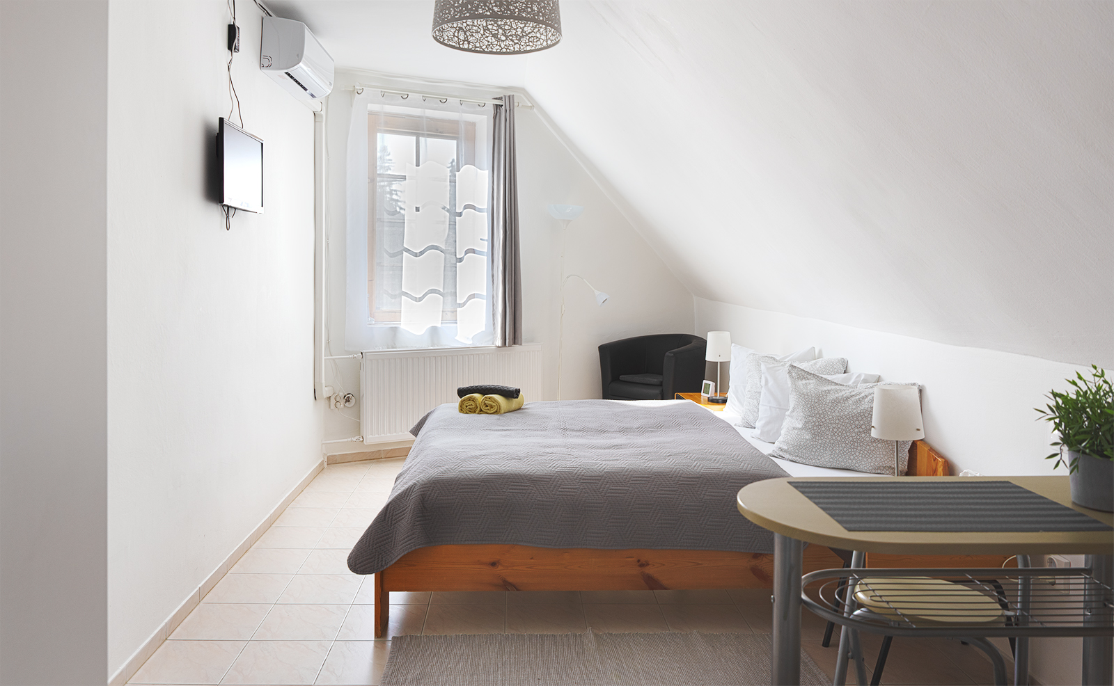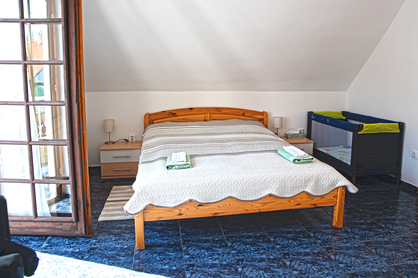 - Hálószoba 2 fő részére: franciaágy, ruhásszekrény, TV, illetve a szobából nyílik egy saját erkély/terasz