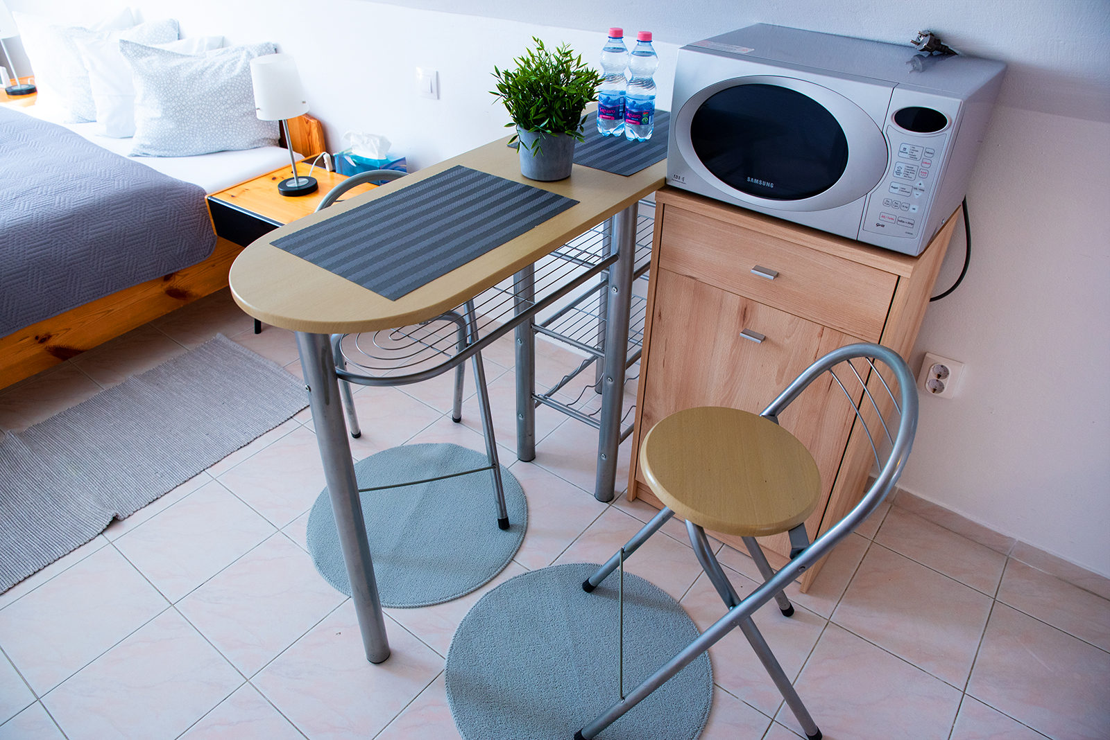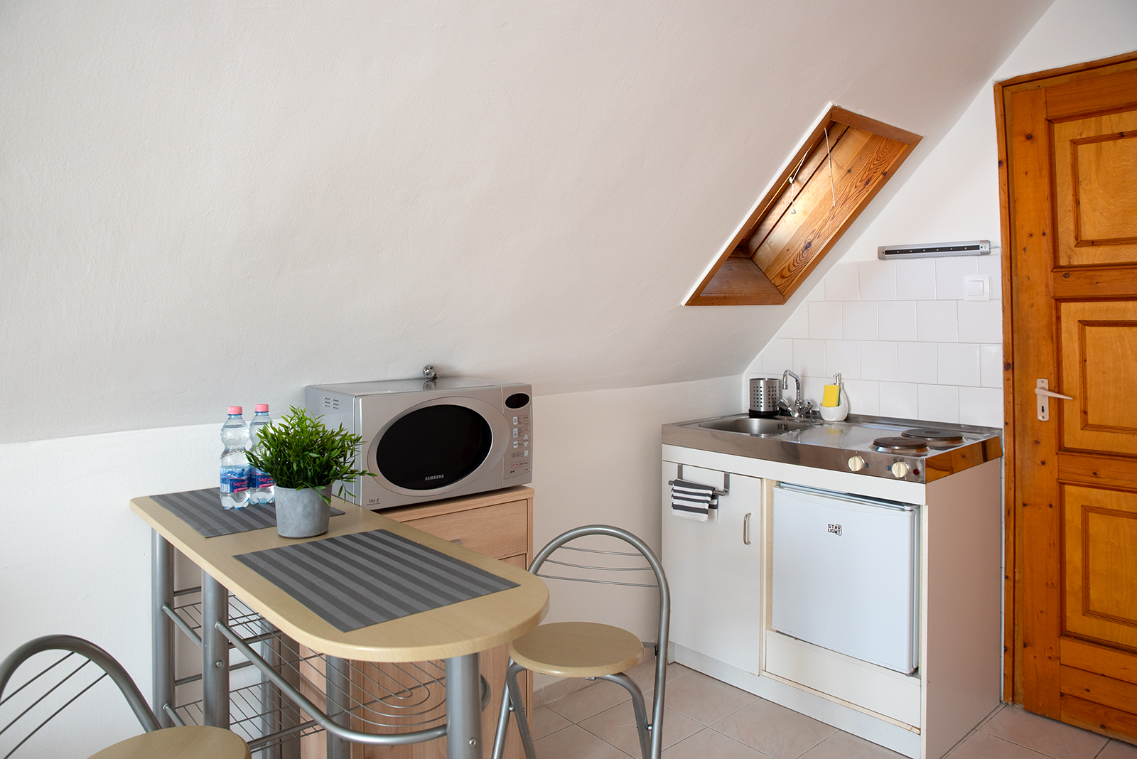 Az apartman alapterülete 18 m2, mely konyhát nem tartalmaz.